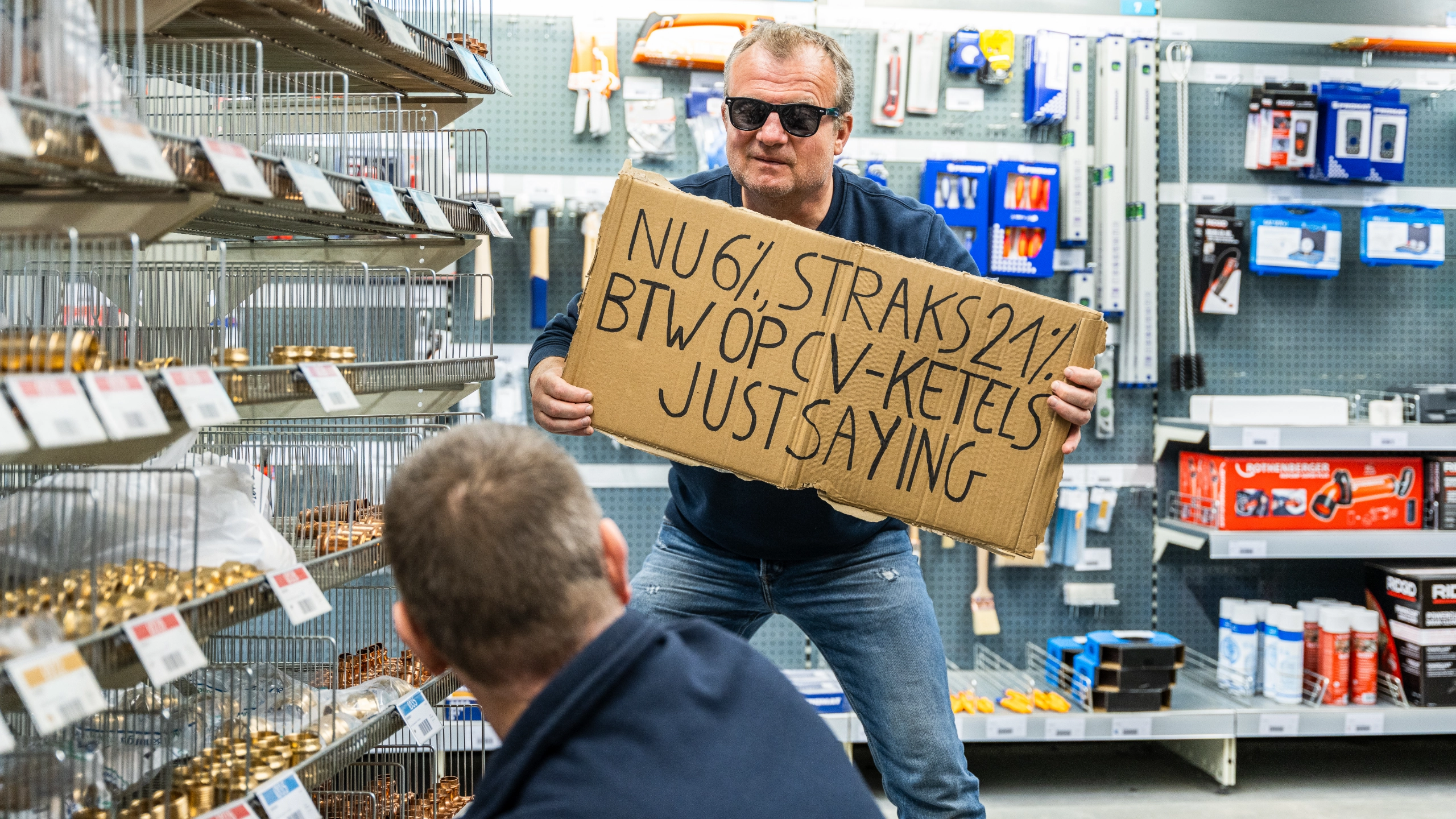 Juli 2025: de btw op cv-ketels gaat van 6 naar 21%. Van Marcke vroeg ons installateurs te helpen hun klanten op tijd in actie te krijgen. Ons antwoord: een Van Marcke-medewerker met kartonnen bordjes, droge humor en helder advies. Catchy boodschappen die installateurs het perfecte excuus gaven om hun klanten aan te spreken.